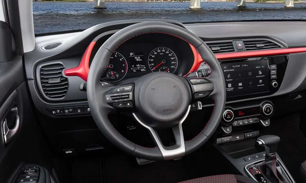 • Селектор трансмиссии и рулевое колесо с красной прострочкой